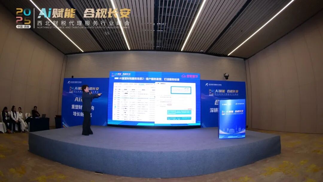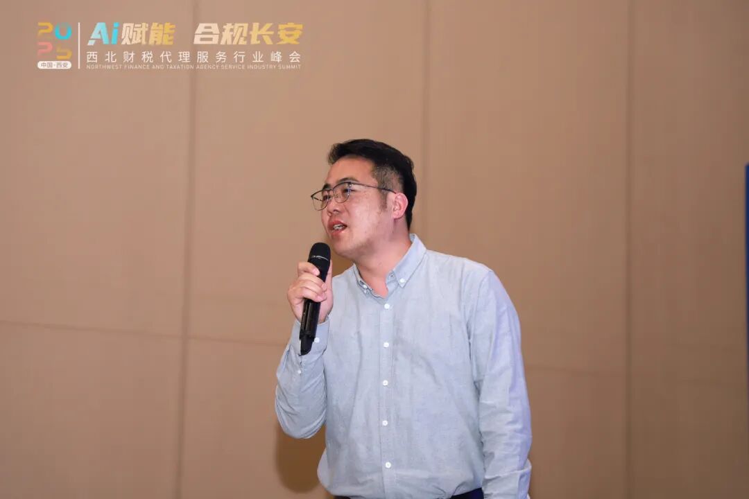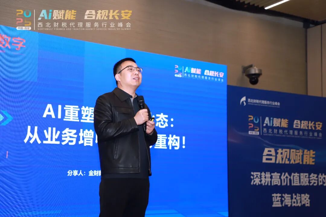 最后,金财数字CEO卫江飞先生及华西大区总监冯燕妮带来了《AI重塑财税新业态:从业务增收到服务重构》的压轴演讲,从战略高度勾勒出AI技术重构行业价值链的未来图景。