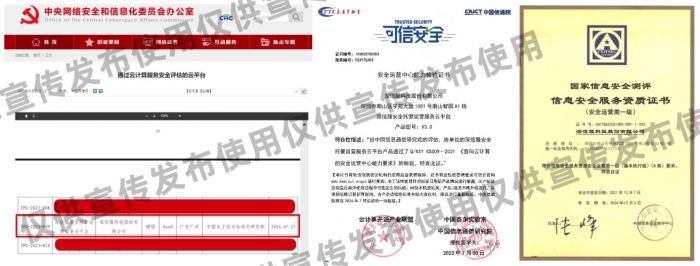 首家且唯一通过由中央网信办牵头组织的云计算安全评估的MSS平台