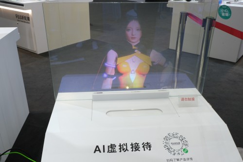 除了数据存储及5G领域的最新成果,富士胶片还展示了在信息媒介领域的创新,透明投影膜上的动态虚拟人物,为参观者献上别样的“欢迎礼”。富士胶片高亮度、高透明投影膜源于80余年沉淀的制膜技术,连续三年在进博会大舞台上广受瞩目。今年富士胶片携手合作伙伴中国全息技术领军企业云视图研团队“千云”AI智能虚拟人,推出“AI虚拟接待”智慧解决方案,虚实结合视觉效果惊艳现场观众。未来在教学、银行、医院导医、公共发言人或智能电视主播等应用领域都将有广泛前景。