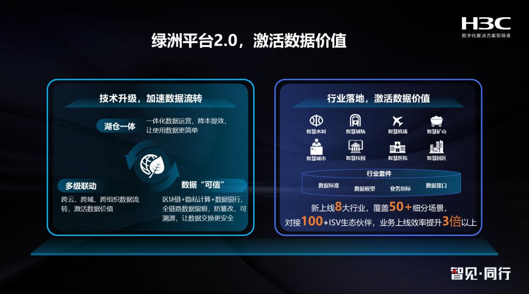 在数字经济飞速发展的当下,行业数字化转型以数据为关键要素,在促进生产力发展和改进生产方式的过程中,催生了一系列的新模式、新应用、新场景,为推动经济社会高质量发展提供新动能。在IaaS云基础能力进化和提升的基础上,生长在云上的行业智慧化应用推动了转型的纵深发展,也让数据价值得到了更广泛的认可,云计算的创新正在从“云优先”向“数优先”过渡。面对行业转型对数据的采、存、算、管和用的能力提出更高要求,紫光云与智能事业群推出了全新的绿洲平台2.0,以技术能力的全面升级加速数据流转,并且聚焦行业场景化应用落地需求打造行业套件,助力百行百业激活数据价值。